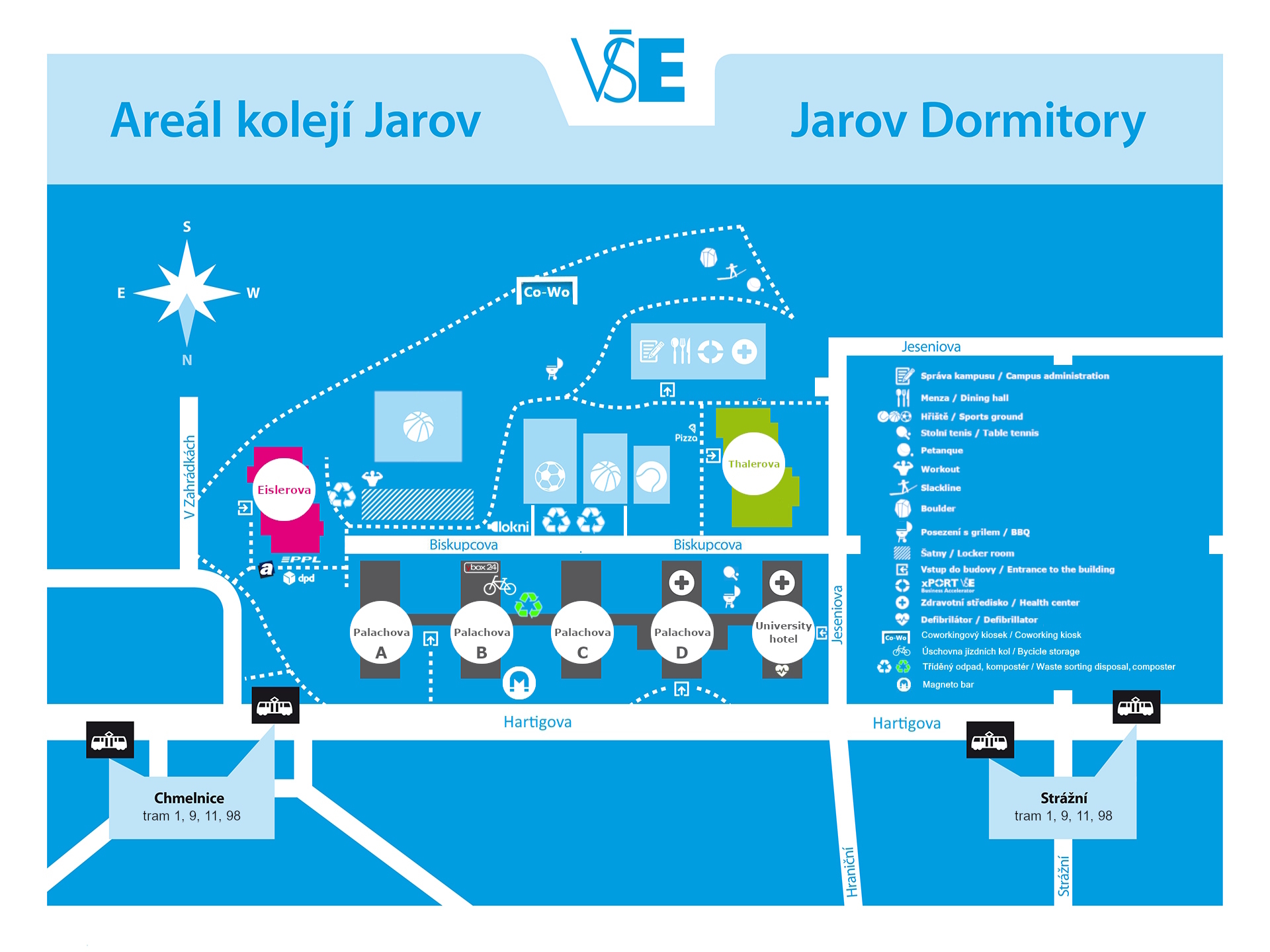 - V Zahrádkách collection point (behind the Eislerova dormitory) – mixed and sorted waste